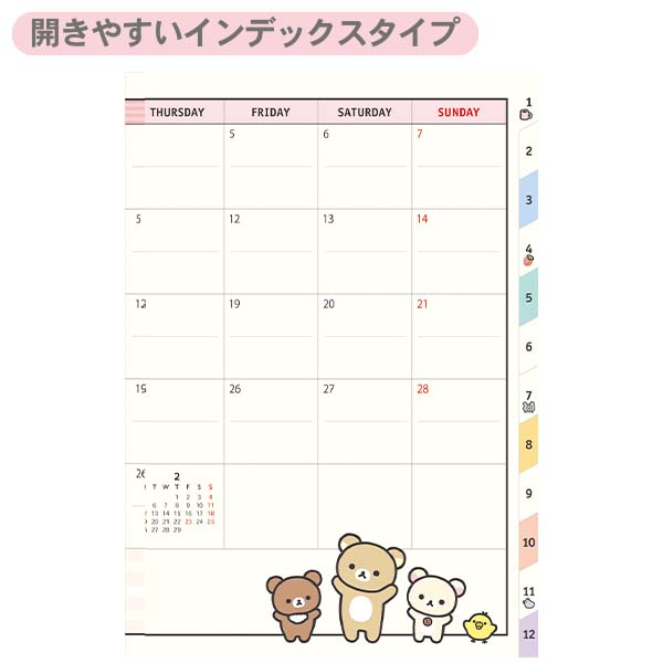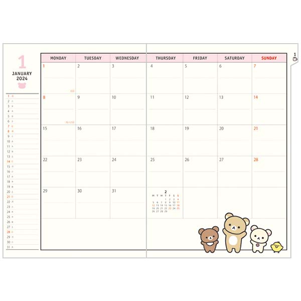 Source : www.kawaii-limited.comRilakkuma 2024 Schedule Book A5 Monthly Index Simple San X Japan